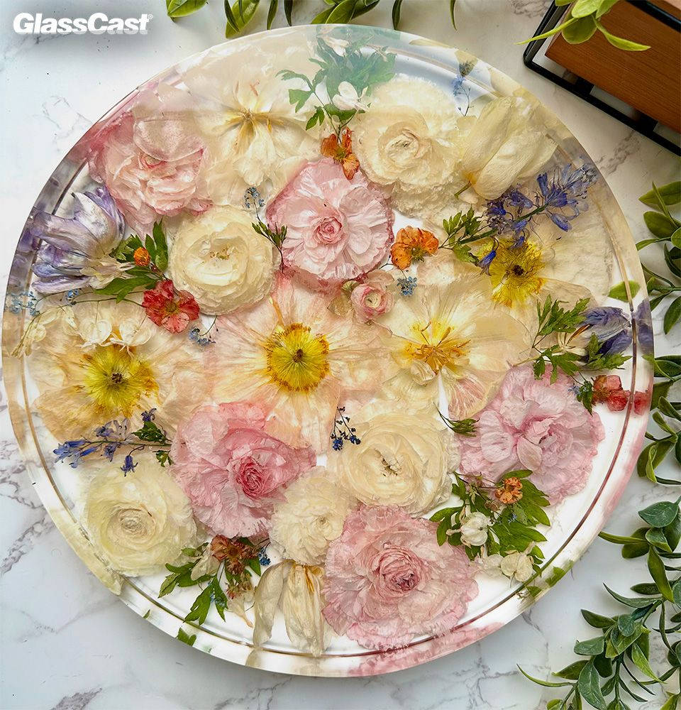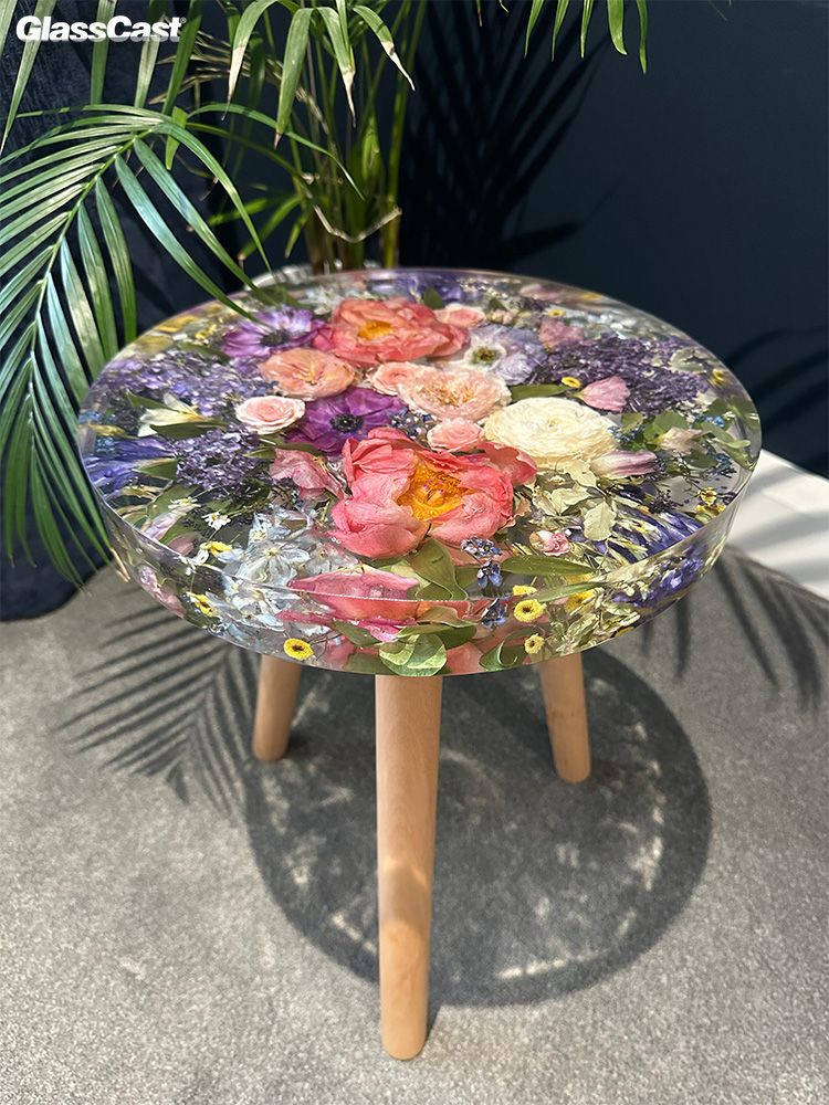 Clare carefully dries the flowers, to preserve the colour and form before arranging into stunning displays and encapsulating them in crystal clear GlassCast 50 resin.