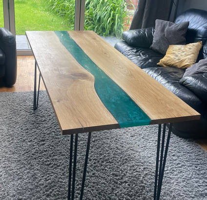This 1.5m Oak and resin river table was Ethan's first foray in incorporating resin into a project.