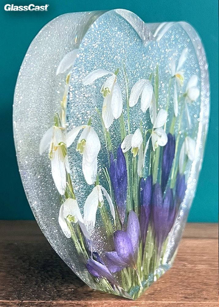 Bea from Bea_utiful Creations, hand crafts these stunning hearts. Using clear GlassCast 10 & 50 casting resins, Bea first preserves and dries the flowers before encapsulating them in crystal clear resin to produce these amazing free-standing hearts.
